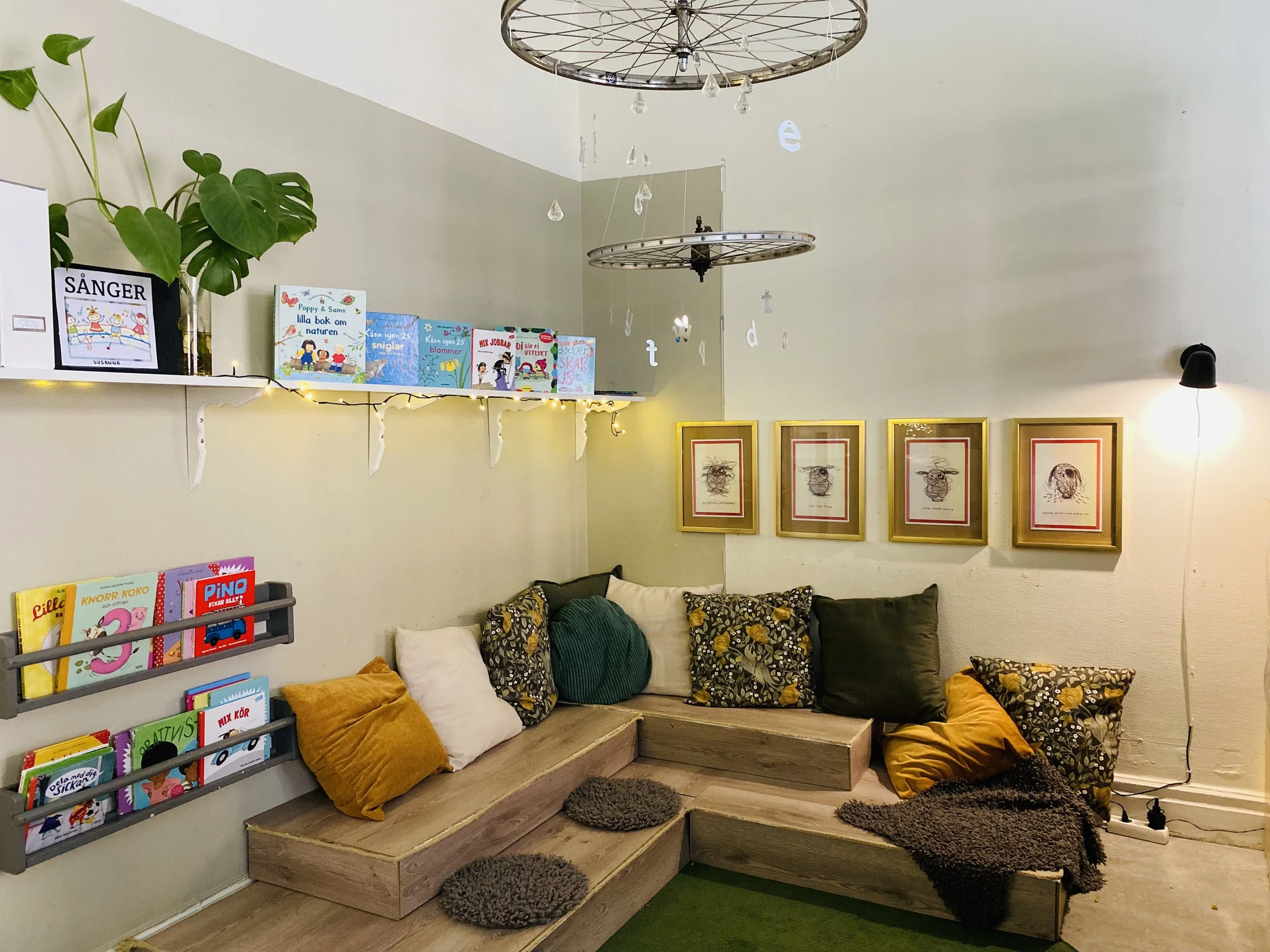 Barnen har rätt till en lugn plats och ett sammanhang som skapar återhämtning och vila. Här får barnen möta böcker i både fysisk och digital form som stimulerar språkutvecklingen.